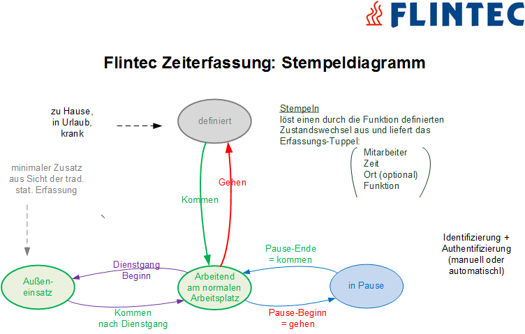 Im ökosystem der Personal- und Auftragszeit (erfassen/bewerten/abrechnen) hat sich die Flintec InformationsTechnologien GmbH auf die Erfassung von Zeit und Ort spezialisiert. Flintec wandelt das Festnetz-Telefon, Handy, Smartphone, Tablet und/oder GPS-Gerät in ein ubiquitäres Zeiterfassungsgerät um.