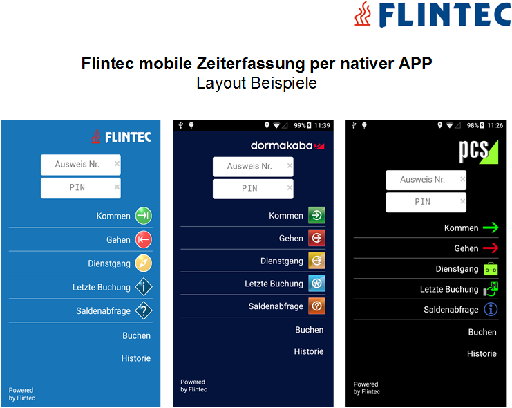Als Technologiepartner der dormakaba und deren Partner sowie PCS und deren Partner bietet Flintec die Erfassung der Zeit per Telefon und mobil, kompatibel und in Ergänzung zu stationären dormakaba und PCS Terminals an.